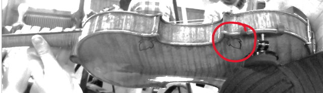 Le violon est d’un verni brun orangé patiné. Il est facilement reconnaissable car :