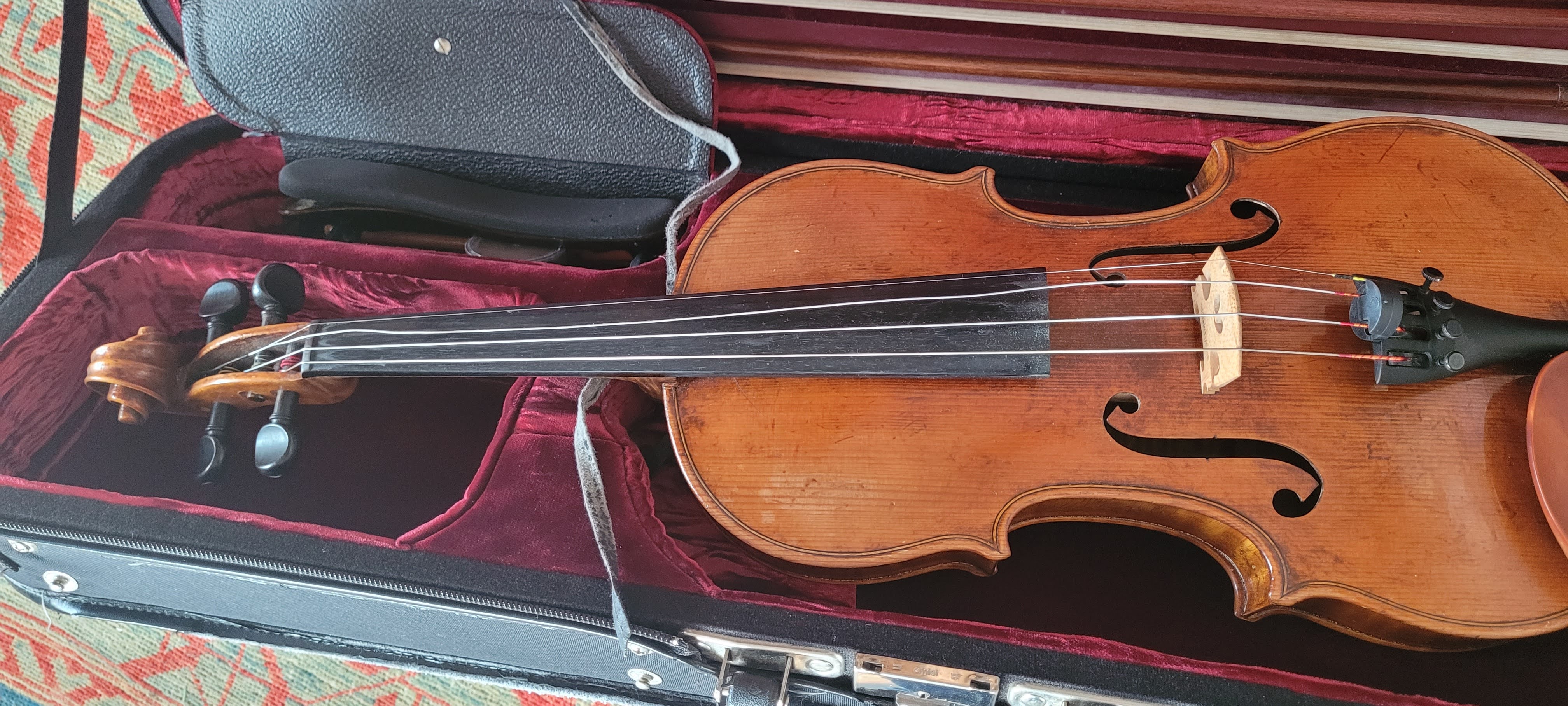 Die Geige befand sich in ihrem Kasten, zusammen mit zwei Bögen :